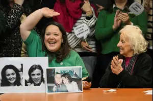 "היום אנחנו מקבלים בברכה את בנם של גרסיאלה אליסיה רומרו וראול אוג'ניו מץ", אמרה דה קרלוטו בת ה-94, בעודה יושבת ליד מץ, שקרנה מאושר. בעוד שהאח, שהקבוצה כינתה "נכד 140", לא נכח, הקבוצה סיפקה פרטים כיצד הוא הופרד ממשפחתו.