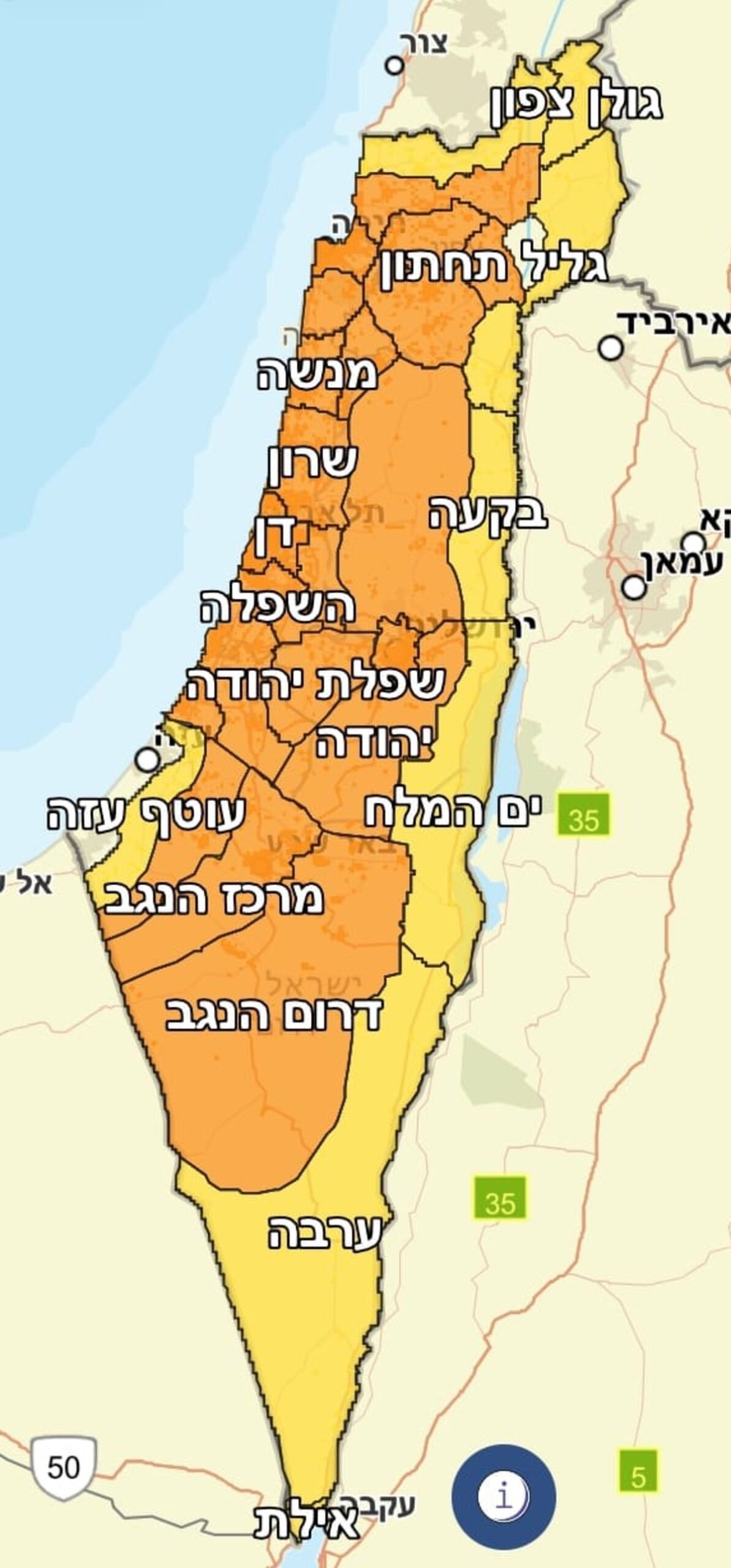 למעשה, מבטל פיקוד העורף את מפת הצבעים ומחזיר את המדינה כולה לכוננות ספיגה עליונה כשעל כל האזרחים לדאוג להימצא ככל הניתן כשמרחב מוגן נמצא בסביבתם המיידית על פי זמן ההתראה המינימלי באזורם.