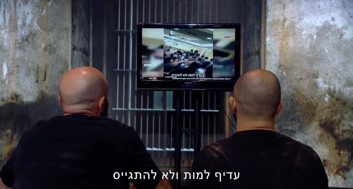 חטופים בשבי צופים בחדשות, המערכון ששובר את הלב (צילום: צילום מסך, מתוך ''ארץ נהדרת'')