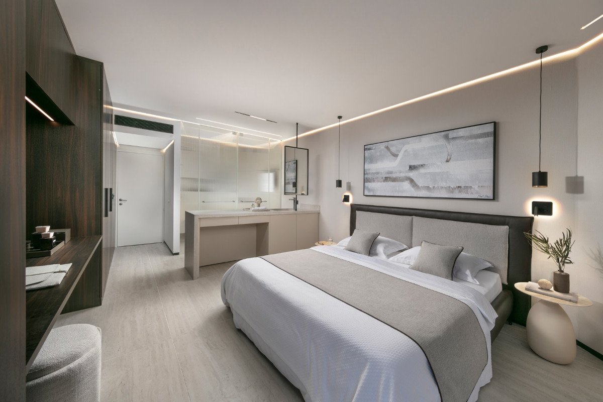 זלדמן מביאה דוגמה מפרויקט שעיצבה על שפת הכנרת עבור משפחה. "הדירה מרגישה כמו בית מלון יוקרתי, אבל מאוד אישי. כל חדר שינה הוא סוויטה, עם חדר רחצה צמוד. השתמשנו בפלטה רגועה של חול, עץ, שמנת ונגיעות שחור. הכל שקט, לא מתחרה בנוף – רק מעצים אותו".