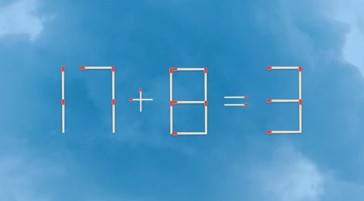 לפניכם תרגיל שגוי, 17+8=3, המורכב מ-21 גפרורים. עליכם להזיז גפרור אחד, כדי לשנות את המשוואה ולהגיע לפתרון ההגיוני. התשובה בתחתית הכתבה.