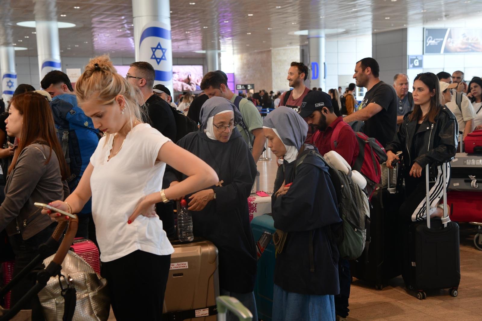 נוסעים תקועים בנתב"ג (צילום: אבשלום ששוני)
