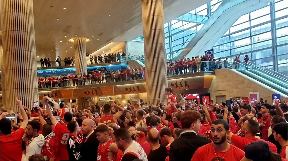 צפו: אוהדי הפועל תל אביב חוגגים לפני נחיתת הקבוצה בנתב"ג