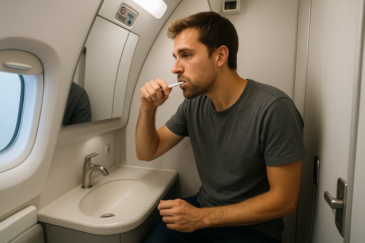 שירותי המטוס אמנם מנוקים לפני כל המראה, ועוברים עוד ניקוי קל במהלך הטיסה על ידי הדיילים, אבל באזורים האלה ריכוז החיידקים הוא גבוה במיוחד. מחקרים שבוצעו מצאו כמויות משמעותיות של אי קולי, סטרפטוקוקוס ואף נגיפי שפעת על ידיות הדלת, כפתורי ההדחה ומשטח הכיור. חלק מהנגיפים אפילו עמידים לאלכוהול לפי דו"חות מחקר. הסיבה לכך נעוצה בשילוב של ניקיון מוגבל בין טיסות, חומרים עם זמן השפעה קצר למדי, ונוסעים שלא תמיד שומרים היגיינה בסיסית כמו שטיפת ידיים. לכן מומלץ מאוד לפתוח דלתות עם נייר טואלט, לנקות ידיים בג'ל ולהימנע ממגע ישיר עם משטחים ככל האפשר . וחשוב יותר: מומלץ לא לצחצח שיניים בתא השירותים. אם אתם חייבים, השתמשו בבקבוק מים מינרליים לשטיפת הפה.