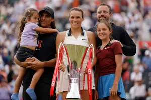 הטניס הנשי חזר לטורניר קווינס לראשונה מאז 1973, והיה זה סמלי במיוחד שאת התואר הראשון באנדי מארי ארנה, תקטוף אחת הטניסאית הוותיקות בסבב – טטיאנה מריה בת ה-37. הגרמנייה המשיכה את מסע הקסם המדהים שלה, גברה הערב (ראשון) 3:6, 4:6 על אמנדה אניסימובה מארה"ב וחגגה את הזכייה יחד עם בעלה ומאמנה, וגם שתי בנותיה – שרלוט בת ה-11 וססיליה בת ה-4.