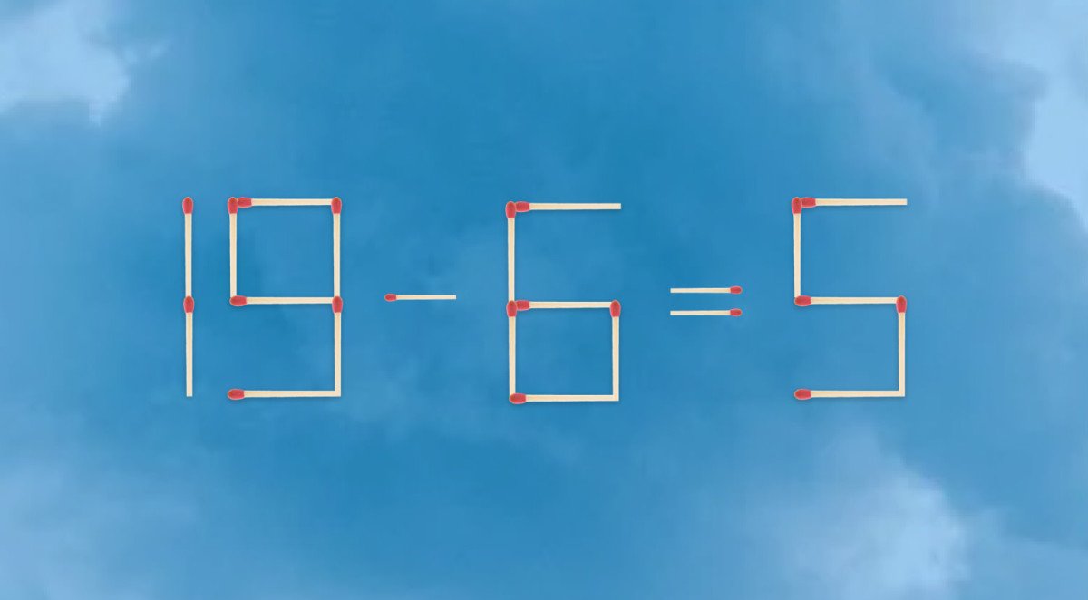 לפניכם תרגיל שגוי, 19-6=5 המורכבת מ-22 גפרורים. עליכם להזיז גפרור אחד, כדי לשנות את המשוואה ולהגיע לפתרון ההגיוני. התשובה בתחתית הכתבה.