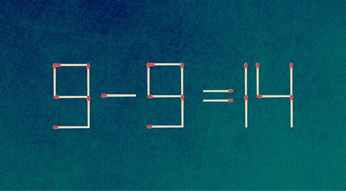 לפניכם תרגיל שגוי, 9-9=14, המורכבת מ-21 גפרורים. עליכם להזיז גפרור אחד, כדי לשנות את המשוואה ולהגיע לפתרון ההגיוני. התשובה בתחתית הכתבה.