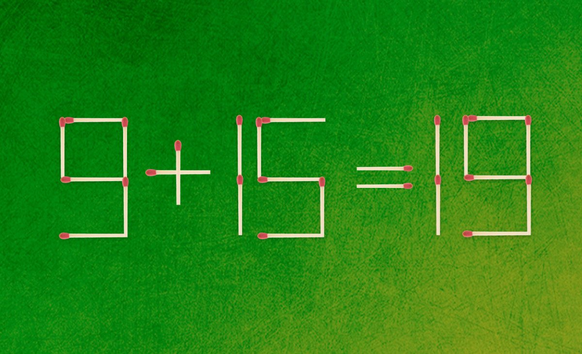 לפניכם תרגיל שגוי, 9+15=19 המורכבת מ-25 גפרורים. עליכם להזיז גפרור אחד, כדי לשנות את המשוואה ולהגיע לפתרון ההגיוני. התשובה בתחתית הכתבה.