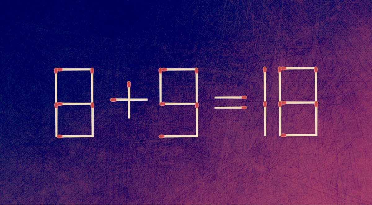 לפניכם תרגיל שגוי, 8+9=18, המורכב מ-26 גפרורים. עליכם להזיז גפרור אחד, כדי לשנות את המשוואה ולהגיע לפתרון ההגיוני. התשובה בתחתית הכתבה.