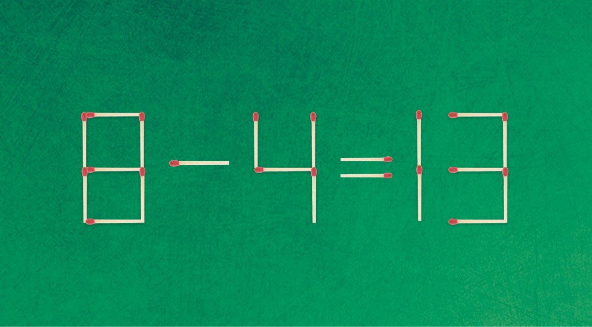 לפניכם תרגיל שגוי, 8-4=13, המורכבת מ-21 גפרורים. עליכם להזיז גפרור אחד, כדי לשנות את המשוואה ולהגיע לפתרון ההגיוני. התשובה בתחתית הכתבה.