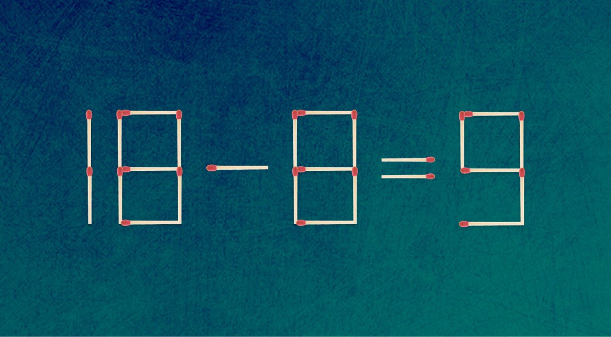 לפניכם תרגיל שגוי, 18-8=9, המורכב מ-25 גפרורים. עליכם להזיז גפרור אחד, כדי לשנות את המשוואה ולהגיע לפתרון ההגיוני. התשובה בתחתית הכתבה.