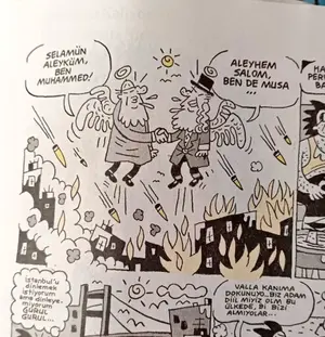 שלושה מאיירים במגזין סאטירי בטורקיה נעצרו אתמול (שני) בעקבות פרסם קריקטורה שבה לכאורה נראה הנביא מוחמד, והמון זועם אף ניסה להסתער על משרדי המגזין באיסטנבול לפני שנבלם על ידי כוחות משטרה.