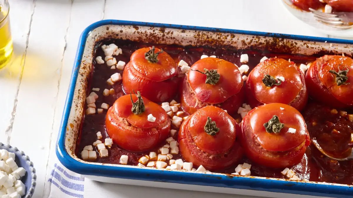טעם של חופשה יוונית: עגבניות ממולאות בדיוק כמו בטברנה