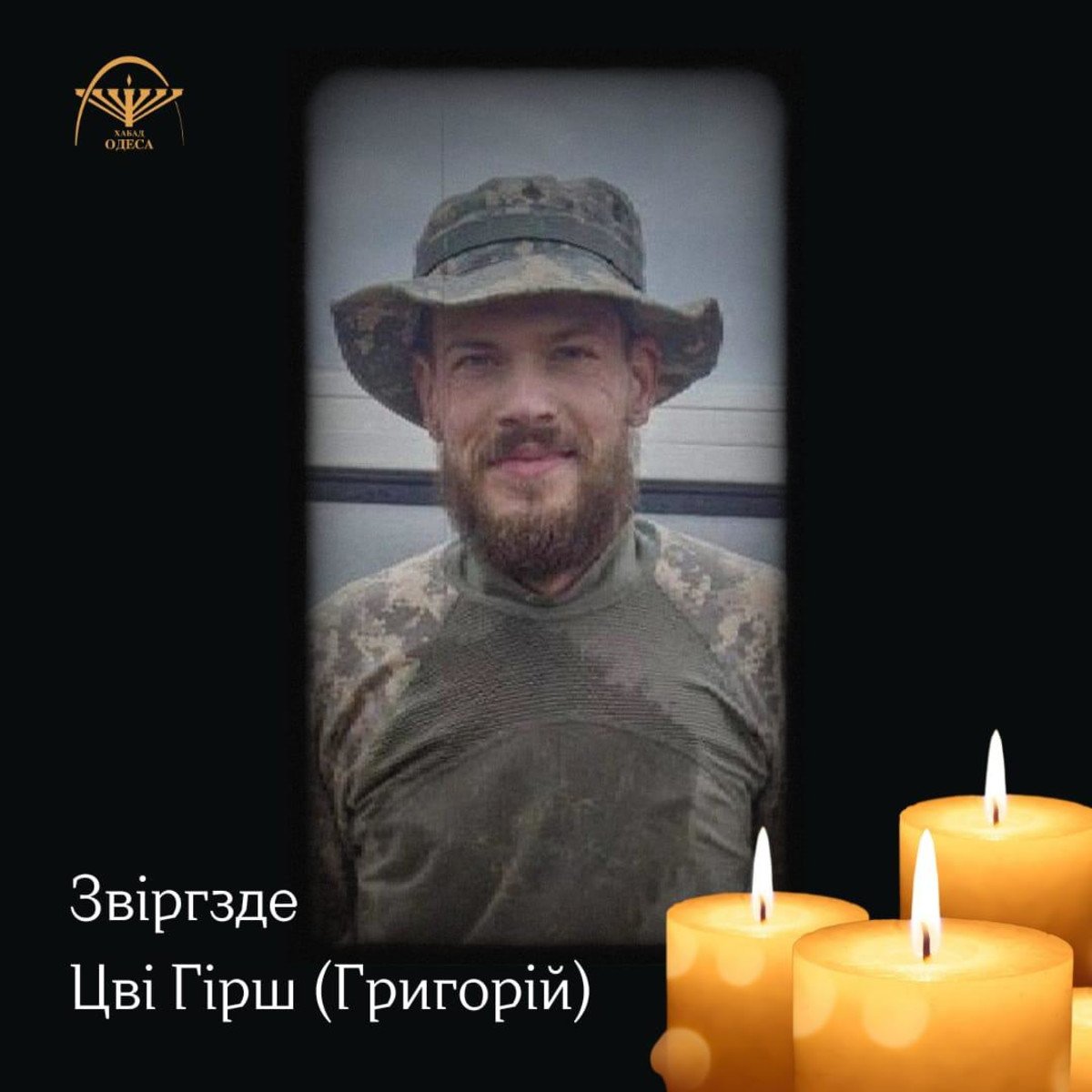 הקהילה היהודית של חב״ד באודסה מודיעה בצער עמוק על מותו של צבי הירש (גריגורי) זבירגזדע, חייל בגדוד ה-34 של צבא אוקראינה, אשר נפל בעת שירותו כמגן המולדת.