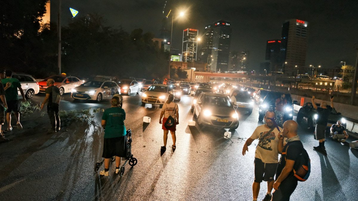 משפחות החטופים חוסמות את נתיבי אילון (צילום: מאיה כהן)