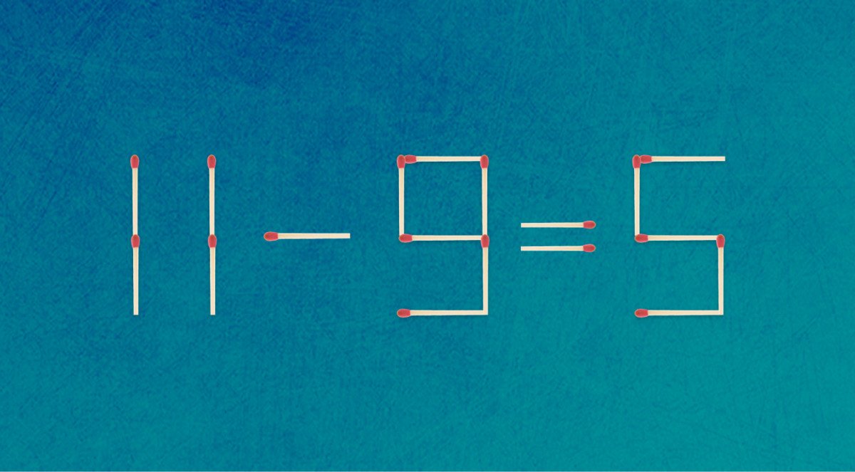 לפניכם תרגיל שגוי, 11-9=5, המורכבת מ-18 גפרורים. עליכם להזיז גפרור אחד, כדי לשנות את המשוואה ולהגיע לפתרון ההגיוני. התשובה בתחתית הכתבה.