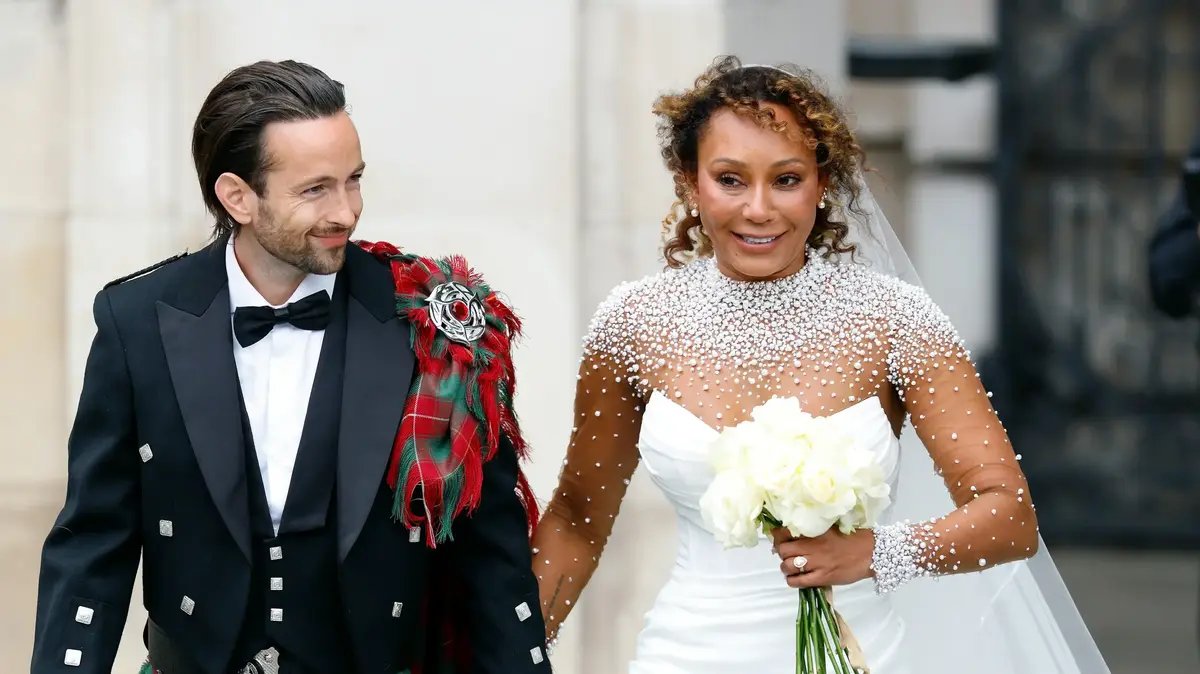 היא לבשה שמלת כלה בעיצוב אישי של מעצבת שמלות הכלה הבריטית ג'וזפין סקוט. הדגם מעוצב בגזרת סטרפלס צמודה, וכולל שרוולים שקופים מעוטרי פנינים. החתן הלך על טוטאלוק במראה סקוטי מסורתי, הכולל את חצאית המשבצות המפורסמת, וז'קט קצר עם כפתורי צ'אנקי שנלבש מעל וסט מחויט, חולצה לבנה מכופתרת ופפיון. הלוק נחתם עם אקססוריז כמו חגורה עם אבזם בולט ותיק ציידים.