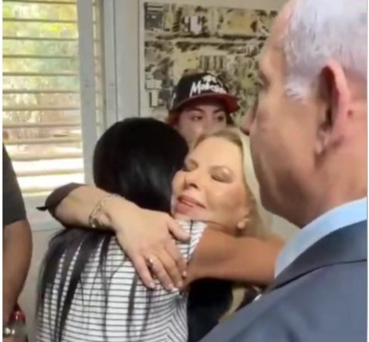 מתחבקות: עינב צנגאוקר פגשה את בנימין ושרה נתניהו בניר עוז