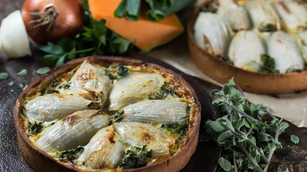9. בקערה נפרדת טורפים את הביצים עם השמנת ומוסיפים חצי כפית מלח. שופכים את הבלילה לקלתית עם הבצלים עד שלושת רבעי גובה ומחזירים לתנור ל-25 דקות נוספות, או עד שאין יותר נוזלים בטארט והוא מקבל גוון זהוב ושחום.