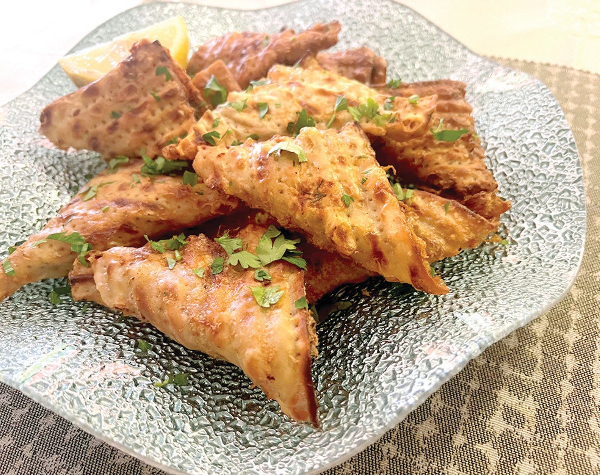 לאחר מכן מחלקים את המצות הלחות לארבע. מניחים 1־½1 כפות מלית במרכז כל ריבוע. מקפלים למשולש ומהדקים היטב את הקצוות. בדרך זו ממלאים את כל המצות. מסדרים את המשולשים הממולאים במגש רחב ומכסים במגבת לחה. מחממים שמן במחבת רחבה (כמו שמן לטיגון שניצל). טורפים היטב את הביצים והמים. טובלים את המצות הממולאות בבלילה ומטגנים משני הצדדים, עד הזהבה. מעטרים בפטרוזיליה קצוצה ומגישים חם, עם פלח לימון.