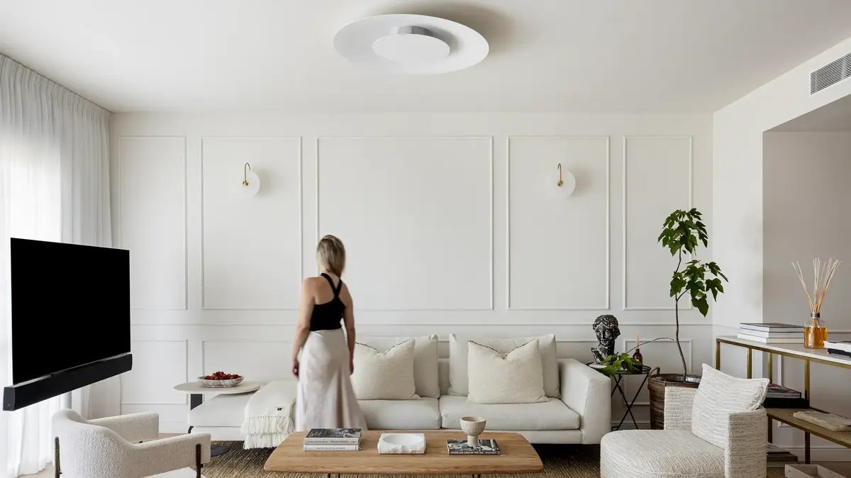 הקו העיצובי שנבחר נשען על צבעים בהירים: גווני לבן, חול ואבן טבעית. רצפת פרקט מולבן בדוגמת פישבון, נגרות מותאמת אישית ושילוב חומרים אלגנטיים כמו שיש דמוי טיח ומתכות יוקרתיות – כל אלה יצרו מראה מאופק אך עשיר. התאורה – שמילאה תפקיד חשוב בפרוייקט. כבר בתחילת הדרך. ביילין בחרה לשתף פעולה עם Light In כדי שהתאורה תותאם לפרטי הפרויקט כמו כפפה ליד. יחד, תוכנן מערך תאורה רב-שכבתי: גם שימושי, גם אווירתי, וגם כזה שמלטף את העיצוב ולא מתחרה בו.