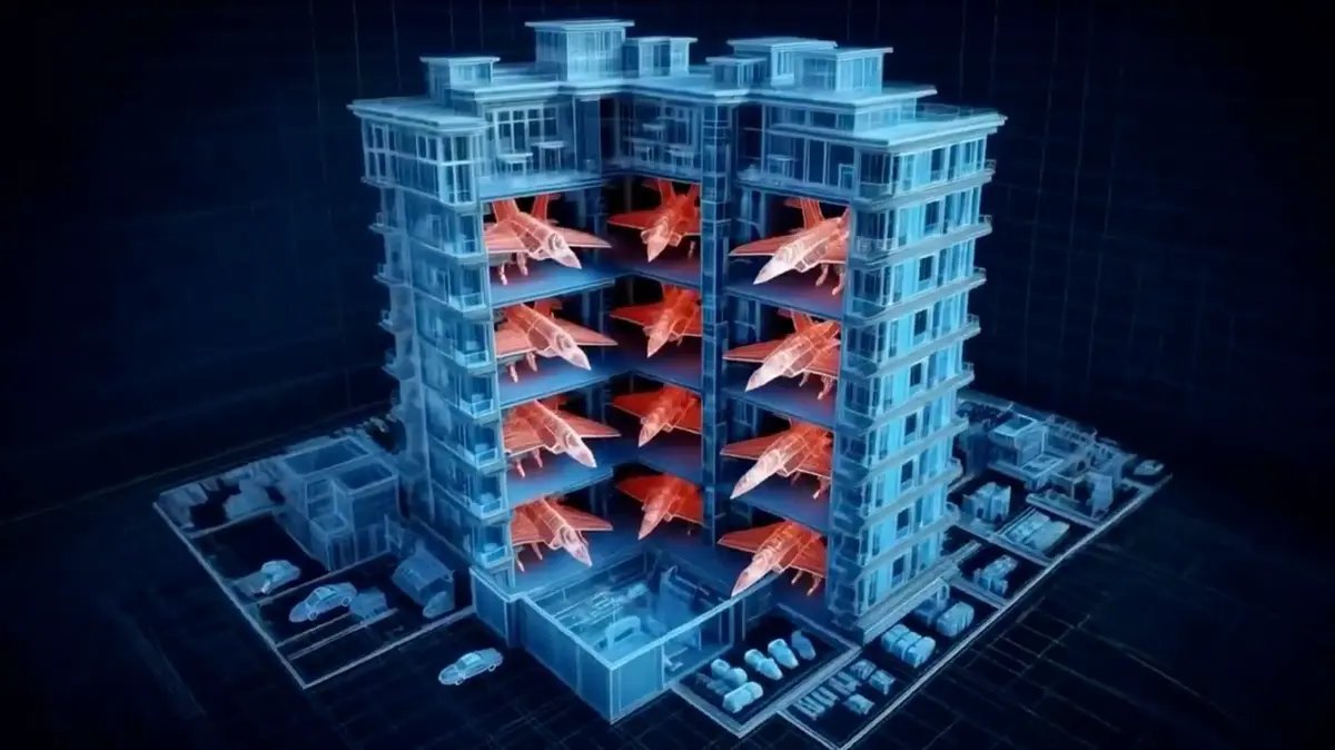 בסרטון תעמולה איראני שמופץ ברשת נטען כי בניין מגורים בתל אביב שימש לאחסון מטוסי F-35, צוללות וטילים. ההדמיות נבנו ככל הנראה בבינה מלאכותית, ואין להן כל קשר למציאות או לתיעוד מהשטח