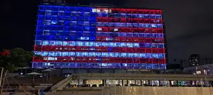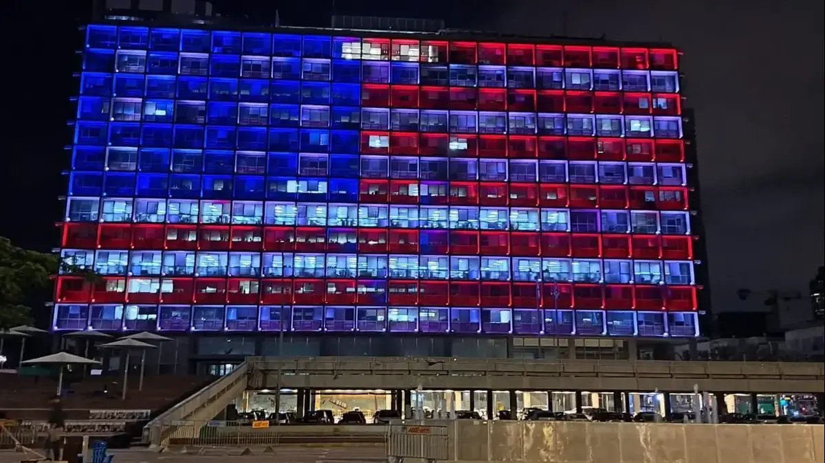 עיריית תל אביב והכנסת הוארו בצבעי דגלי ישראל וארה"ב