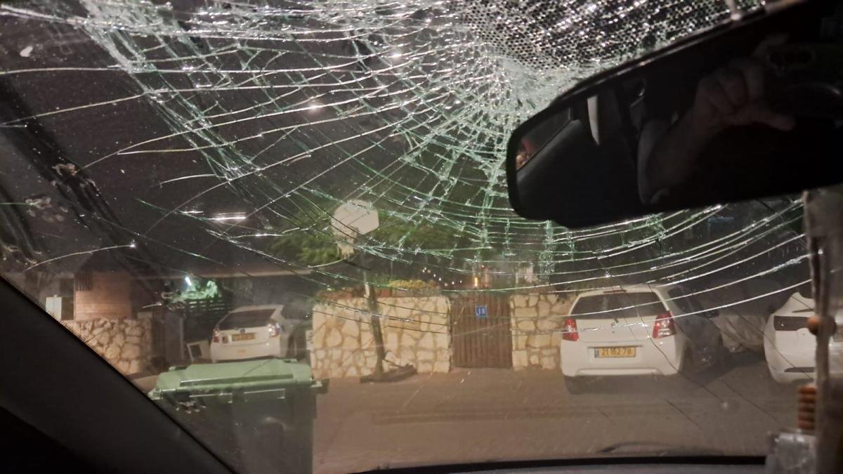 שמשת הרכב שנופצה למפגין מול ביתו של יאיר גולן (צילום :ללא קרדיט)
