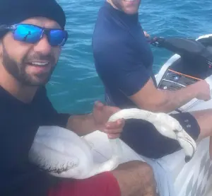 פלמינגו תשוש, שזוהה על ידי עובד רשות הטבע והגנים בשמורת הטבע הבונים, חולץ מעומק הים כשהוא תשוש ולא מצליח להמריא.