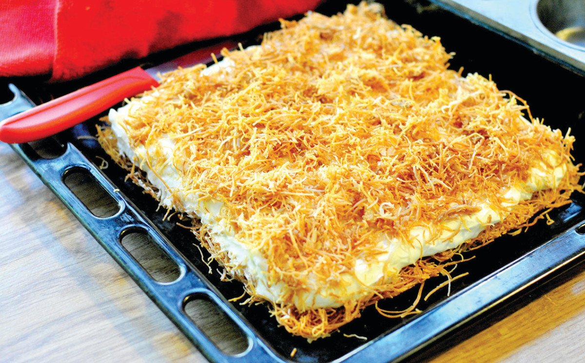 עוגת גבינה קדאיף או קרם שניט קדאיף (צילום: פסקל פרץ-רובין)