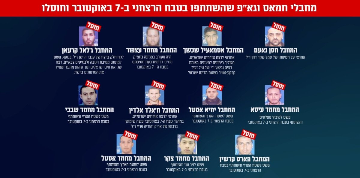לצד רשימת המחבלים, בהודעה המשותפת נמסר: "צה"ל ושב"כ ימשיכו לפעול נגד כל מי שהשתתפו בטבח הרצחני ב-7 באוקטובר".