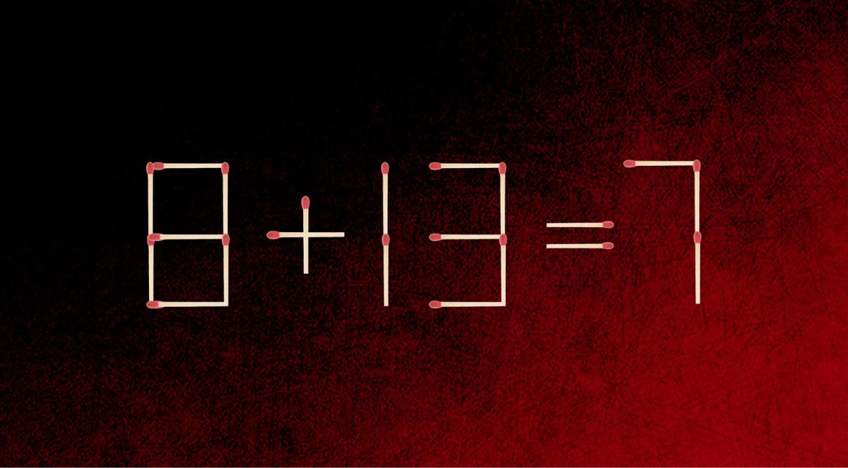 לפניכם תרגיל שגוי, 8+13=7 המורכבת מ-21 גפרורים. עליכם להזיז גפרור אחד, כדי לשנות את המשוואה ולהגיע לפתרון ההגיוני. התשובה בתחתית הכתבה.
