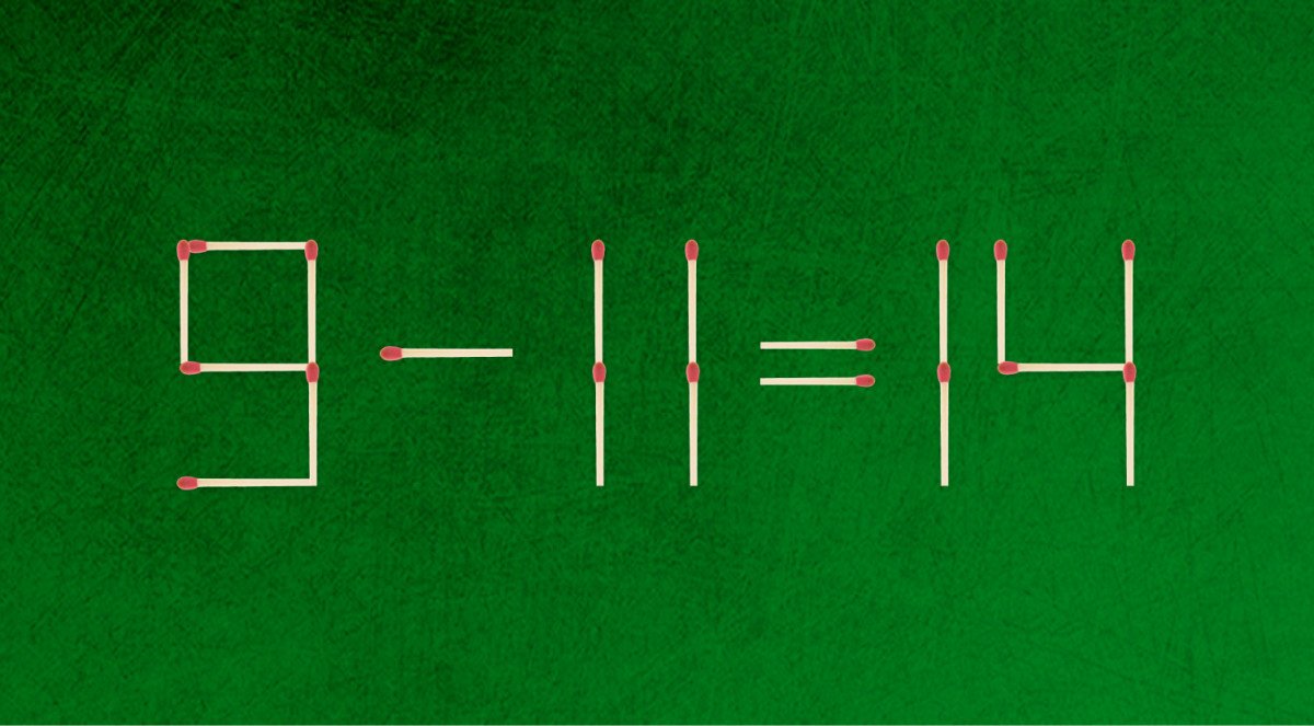 לפניכם תרגיל שגוי, 9-11=14, המורכבת מ-19 גפרורים. עליכם להזיז גפרור אחד, כדי לשנות את המשוואה ולהגיע לפתרון ההגיוני. התשובה בתחתית הכתבה.