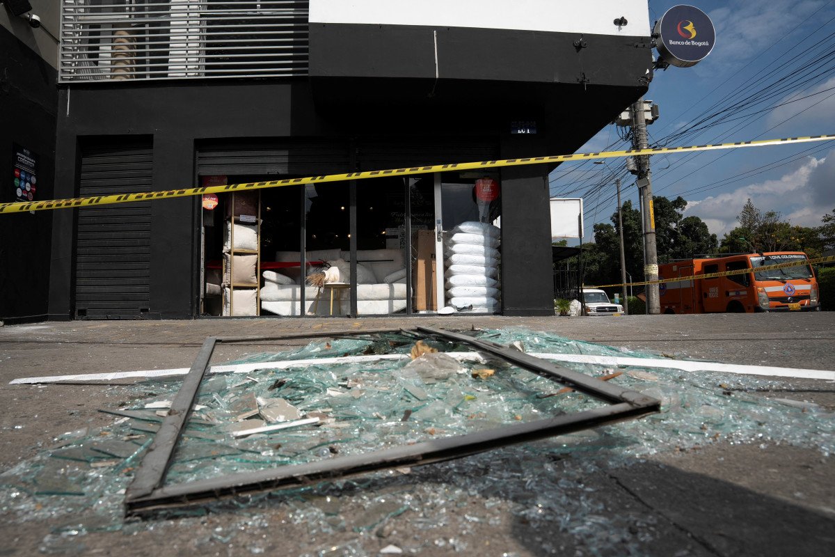 עובדים בקולומביה מנקים את הרחובות מזכוכיות ופסולת לאחר שרכב תופת התפוצץ (צילום: רויטרס)