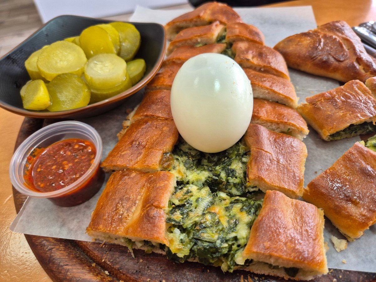 שתי כוסות איירן מאוחר יותר, חיכתה לנו ההפתעה האמיתית: פידה – מאפה שהמילוי בתוכו (גבינה ותרד) זהה לזה של בורקס המים, אבל המעטפת, שלי הזכירה עוגת פרג, הייתה כל כך עדינה ונתנה כל כך הרבה מקום למילוי הטעים, עד שנדמה לי שהתחלתי להלל בתורכית! אם צריך בכל זאת לוותר על משהו, הייתי מדלג על הביצים כתוספת, וכן על החמוצים והחריף – לא מפני שהם רעים חלילה, אלא מפני שהם סטנדרטיים, כלומר – מהסוג שיוגש לכם בכל מאפיית בורקסים אחרת.