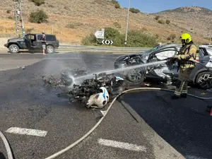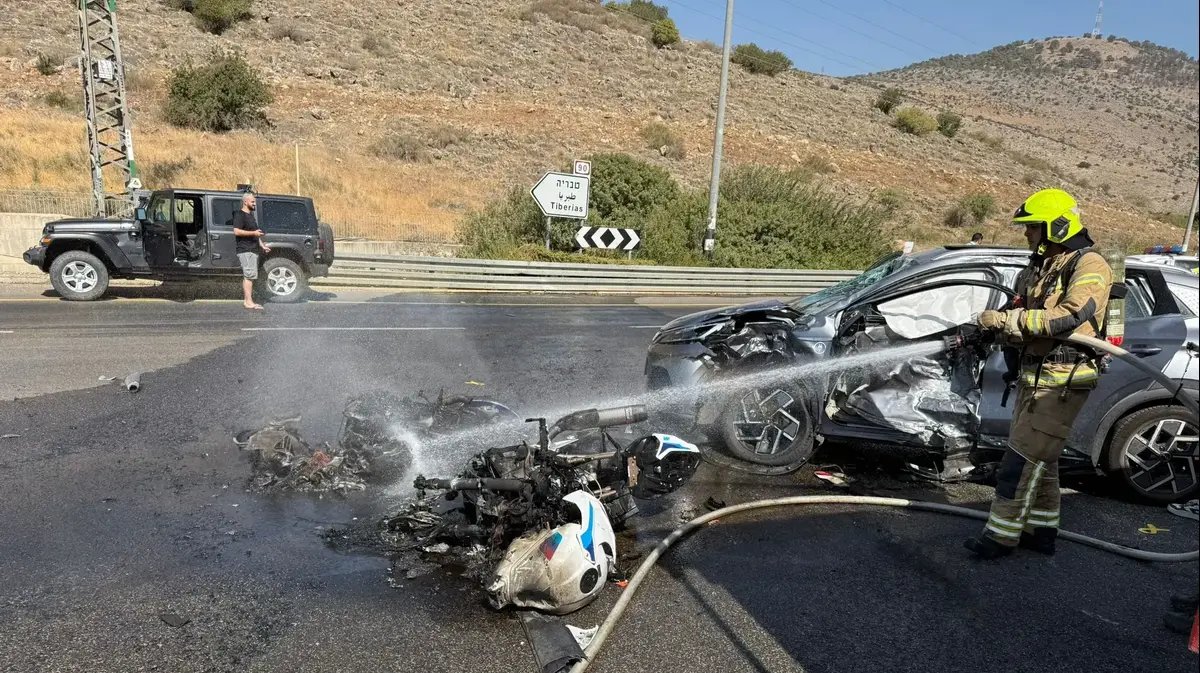 תאונה קלטנית בצפון: שני רוכבי אופנוע כבני 50 נהרגו הבוקר (שבת) בתאונת דרכים קטלנית שהתרחשה בכביש 90 סמוך לצומת שדה אליעזר. צוות מד"א שהגיע למקום ביצע בהם בדיקות רפואיות, בסיומן נאלץ לקבוע את מותם. צוותי כיבוי הוזעקו גם הם למקום, וסייעו בכיבוי האופנועים – שעלו באש.