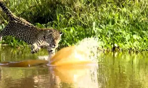 רק בסיום הסרטון, כעבור שניות ארוכות ומותחות, נראה היגואר עולה שוב מהמים שלם וללא פגע, אך גם ללא הטרף שלו.