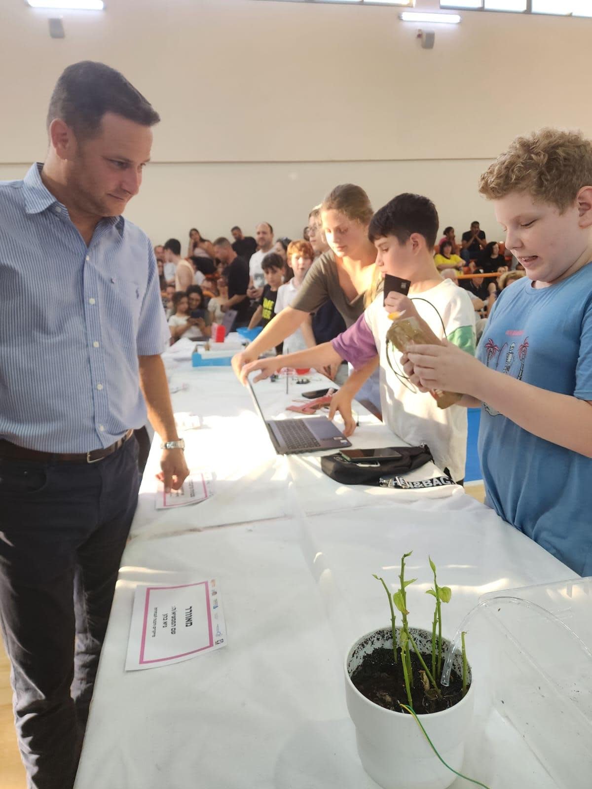 מפתחי המיני טנק שמוזכר בכתבה, רה''ע ראשל''צ באירוע עם התלמידים (צילום: דוברות עיריית ראשון לציון)