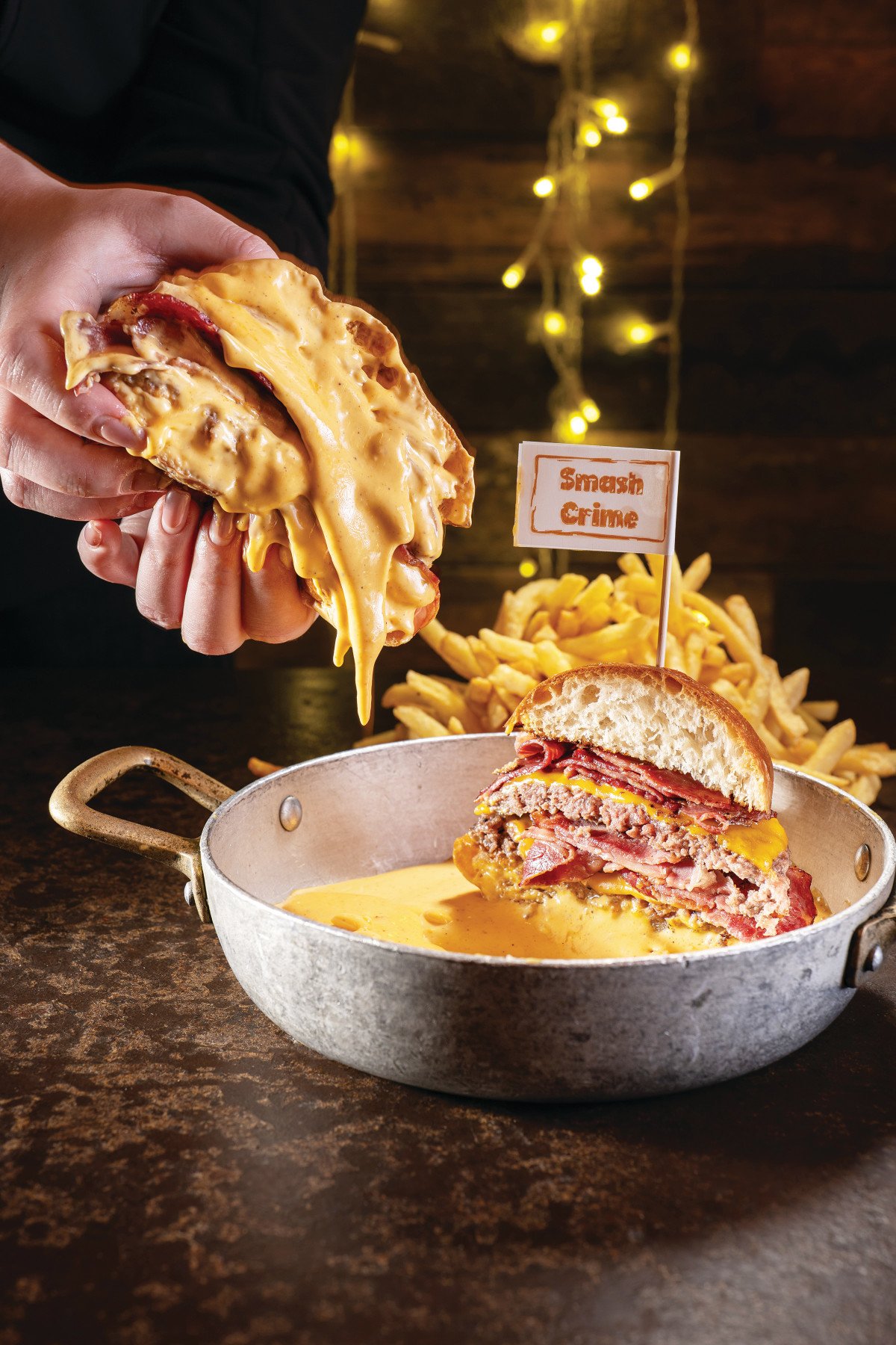 היהלום שבכתר התפריט הוא ללא ספק הסמאש בורגר עם רוטב צ’דר מעושן, שמוגש תחת קטגוריית ה”מנוגבים”, שם המרמז על הטבילה העמוקה בים של רוטב עשיר. שתי קציצות סמאש, שעברו טיפול מדוקדק על הפלנצ’ה ליצירת קראסט עשיר, מונחות בתוך לחמנייה רכה ועטופות ברוטב צ’דר מעושן בעל גוון ענברי. כל ביס מהקומפוזיציה הזו הוא חוויה רב־ממדית, סימפוניה של טעמים שבה עסיסיות הבשר הדחוס משתלבת בהרמוניה במליחות העמוקה של הצ'דר, בעוד הארומטיות המעושנת מלטפת את החך. למרות העושר והנדיבות הפרועה, המנה שומרת על איזון קולינרי מפתיע (89 שקלים).