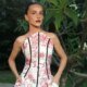 כיאה לפיגורת הפטיט שאוחזת בה, לבשה חליפת שני חלקים בהשראת רטרו בארוקי, בעלת נוכחות דרמטית ומעודנת כאחד. חלק עליון בגזרת מחוך בעל כתפיות עבות, קו מחשוף...