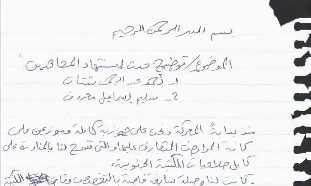 צה"ל חושף מסמך מחודש פברואר 2025 שאותר מתחת לבית החולים האירופי בח'אן יונס, בו מתאר פעיל חמאס כי מפקד פלוגה בארגון הורה לנעול...