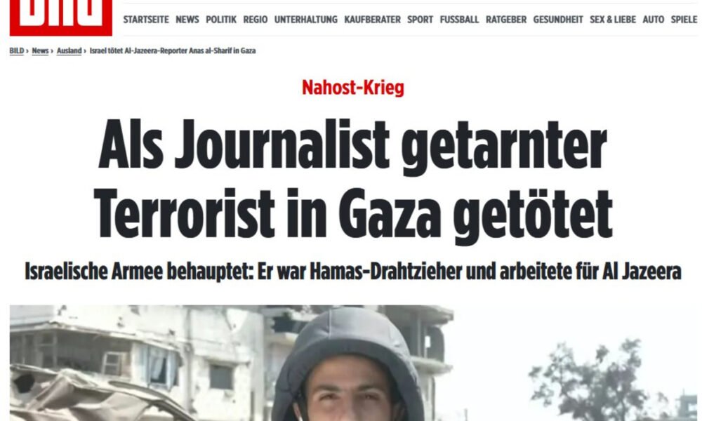 העיתון הגרמני הגדול באירופה, "בילד", פרסם הבוקר (שני) כתבה על המחבל והעיתונאי אנאס אל שריף אשר חוסל ברצועת עזה, וכתב כי "מחבל מחופש לעיתונאי...