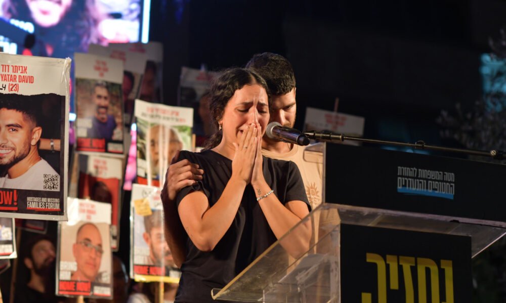 יעלה ועילי דוד, אחיו של החטוף אביתר דוד, מדברים בכיכר החטופים לאחר צפייה בשני הסרטונים שפרסם חמאס בהם נראה אחיהם החטוף במצב קשה...