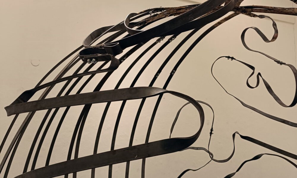 ״חלל אחד ובתוכו שני כדורים. אחד גדול, בסיסו חלוד והוא ממלא כמעט את כל החלל, והשני קטן וסמוך לצידו. שני הכדורים יוצרים נוכחות...