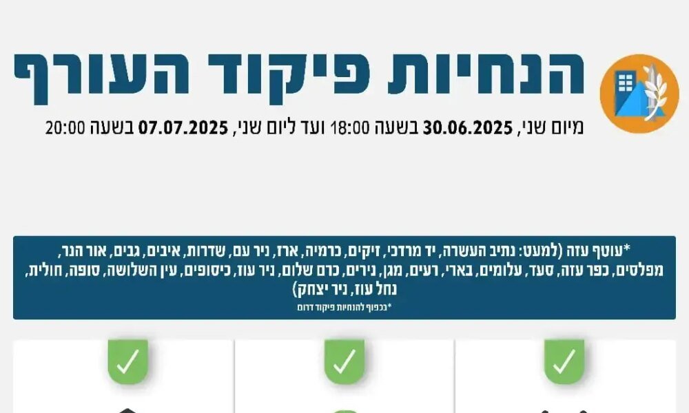 כמעט שבוע מאז תום המערכה מול איראן, הודיע צה"ל על שינויים במדיניות ההתגוננות. זאת, כשזו הותאמה – לאזור עוטף עזה בלבד Source link