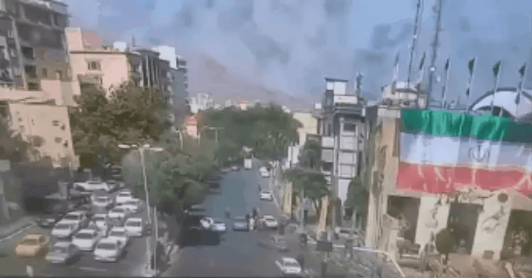 A video released in Iran shows a direct hit on a building in Tehran's Quds Square – in real time, in front of dozens of bystanders....