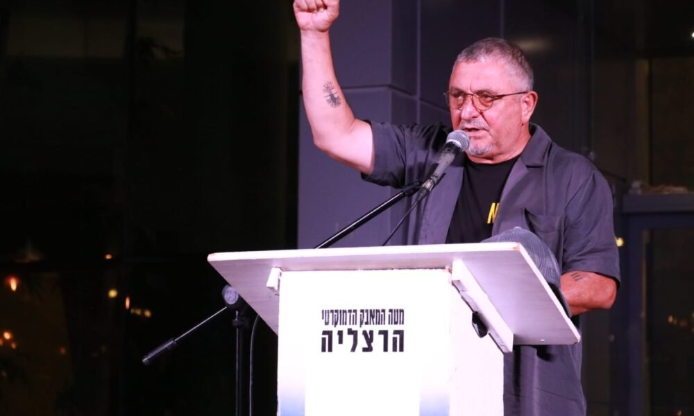 חדשות מתפרצות דני אלגרט בעצרת החטופים בהרצליה (צילום: זאב ינאי, מטה המאבק הדמוקרטי הרצליה) במהלך העצרת השבועית להשבת החטופים בהרצליה, דני אלגרט,...