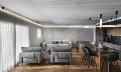 הדירה, בשטח של כ־120 מ"ר, עברה שינויים מבניים מהותיים כבר מול הקבלן – בראשם ביטול של אחד מחדרי השינה, לטובת הרחבת החלל הציבורי. צעד נוסף ולא...