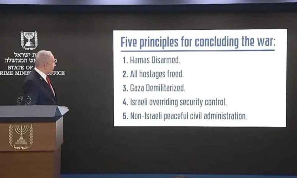 ראש הממשלה בנימין נתניהו ערך היום (ראשון) מסיבת עיתונאים לתקשורת הזרה בירושלים, והציג בה חמישה תנאים לסיום המלחמה בעזה. נתניהו טען שהתנאים הם...
